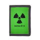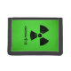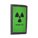 This green wallet features the international symbol that denotes a radioactive substance. The radiation trefoil appears in a grungy, worn-out style. The distressed text below the symbol says "RADIOACTIVE," but can be easily personalized to say whatever you like!