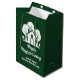 This forest real estate company green gift bag is perfectly customized for a realtor who specialized in houses near the wilderness or woodlands. The white silhouette of trees behind a log cabin home and personalized with your agent and realty business name for a housewarming present.