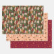 Green Red and Pink Christmas Forest Village Wrapping Paper Sheets