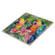 Green, Red, Blue Parrots and Tropical Flowers Ceramic Tile