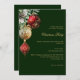 Invite your team to celebrate the holiday season with this stylish and modern Christmas party invitation. Featuring an elegant green background, the design is beautifully decorated with festive red and gold baubles, greenery, and a pine cone for a classic touch. Personalize it with your company’s event details to create a professional and sophisticated invitation, perfect for your corporate holiday gathering.