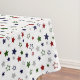 Green Red Navy Silver Stars on White Tablecloth
