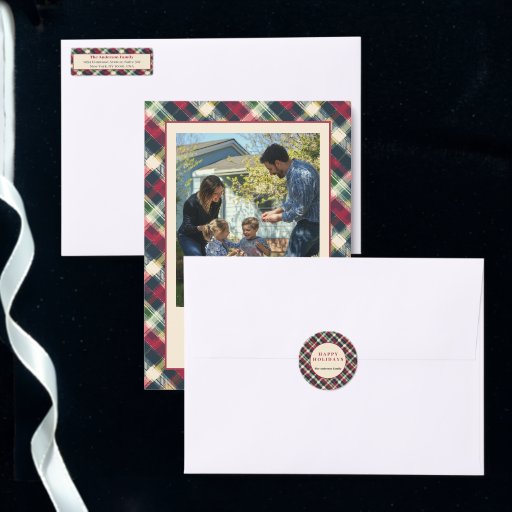 Add festive charm to your holiday cards and packages with this custom tartan plaid return address label. Featuring a classic red, green, and navy plaid border with an elegant cream center, this label is perfect for adding warmth and personality to your seasonal mail.