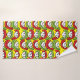 Green Red Vegetable Flower Pattern Bath Towel Set. Green red vegetable stem with white flower whimsical pattern on yellow background design for gardening lover, plant lover.