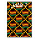 Table card with green, dark red, and yellow gold on black Kente Cloth. Customize the table number using the easy template. Font style, font size, and font color are customizable. Classic and chic, the perfect wedding reception table card.