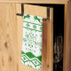 Green Reindeer Knitted Pattern White Background Kitchen Towel