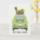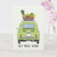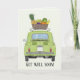 Get well card. A green retro Fiat 500 with a fruit basket in watercolor