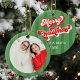 Green Retro Merry Christmas Photo Custom Ceramic Ornament