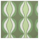 Retro Mission is a striped retro inspired pattern featuring multiple shades of green with a horizontal repeating wavy stripe pattern.