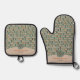 Green Retro Ovals Pattern Personalized Oven Mitt & Pot Holder Set