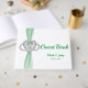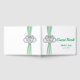 Elegant green ribbon and infinity heart decorate this guestbook. Wedding guest books are fun for both the couple and their celebrants. Invite attendees to leave you well-wishes at your reception, and you're guaranteed to have a keepsake to look back on for years to come. Plus, your guests will get to leave their mark on your event, not to mention put in writing whatever they didn't have a chance to express in person on the big day. Personalize the book by changing the text in the fields provided. You can change font style, size, and color.
