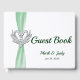 Elegant green ribbon and silver swans decorate this guestbook. Wedding guest books are fun for both the couple and their celebrants. Invite attendees to leave you well-wishes at your reception, and you're guaranteed to have a keepsake to look back on for years to come. Plus, your guests will get to leave their mark on your event, not to mention put in writing whatever they didn't have a chance to express in person on the big day. Personalize the book by changing the text in the fields provided. You can change font style, size, and color.