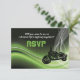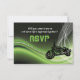 Green road biker wedding RSVP response card, featuring a motorcycle on an abstract gradient green, white, black background and a white mesh. Cool yet elegant design perfect for the motorcyclists with a fine taste. Some elements courtesy of Clipartandfonts.com.
