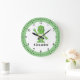 Waving Green robot children illustration clock personalized with name, background color can be change in any color you desire