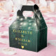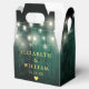 These emerald green string lights rustic wood boho barn wedding favor boxes can be personalized with your information in chic gold typography. Designed by Thisisnotme©