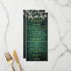 These emerald green rustic string lights barn wood menus can be personalized with your special wedding day menu in elegant gold typography. Designed by Thisisnotme©