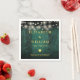 These green rustic wood boho barn string lights wedding napkins can be personalized with your information in chic gold typography. Designed by Thisisnotme©