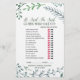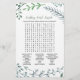 This green rustic wreath "he said she said" game is perfect for an outdoor bridal shower. The front of the game card features "he said she said" which is a fun quiz about the bride and groom. The back of the card features a word find with wedding related words and phrases. The design features a beautiful and whimsical frame of watercolor leaves, plants and greenery. Personalize the game card with the brides name and bridal shower date.
