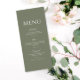 Enhance your wedding reception with the "Green Sage Minimalist Elegant Wedding Menu." This beautifully designed menu card features soft green sage tones and a clean, minimalist layout, making it a perfect addition to your wedding table setting. Ideal for showcasing your carefully curated meal options, the elegant design complements a variety of wedding themes, from rustic to modern. Impress your guests with this stylish and sophisticated menu, adding a touch of understated luxury to your special day.