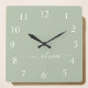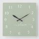 Green Sage Script Monogram Girly Name Square Wall Clock