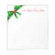 5.5” x 6” white customizable notepad with an image of a corner green satin ribbon with red holly berries. See the entire Christmas Notepad collection under the OFFICE category in the HOLIDAYS section.