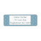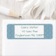 These return address labels have an art deco design of green half circles connect with lines on a field of blue.