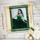 This vintage elegant Quinceañera guest book features green and gold scroll with with your favorite photo on an old parchment paper background. Easily customize by clicking "Personalize" to add your text.