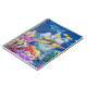 Silk painting of a green sea turtle and friends. Little gold fish, angel fish and others share the sea with colorful seaweeds and corals.