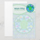 A green sea turtle with patterned shell, against a blue water/wave pattern, with several colorful fish. Circular design with a green border. Customizable stationery with area at top for title and subtitle -- or choose your own text to enter.