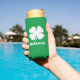 Green seltzer can cooler for St Patrick's Day. Cool design for lucky four leaf clover. Personalize with your own name or text.