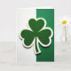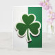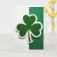 This greeting card features a single shamrock centered on the front, with three heart-shaped leaves and a slender stem in rich green that looks like soft moss or trimmed grass 💚. The shamrock sits inside a thin white frame that lifts it slightly off the surface, casting a gentle shadow that feels like a quiet embrace. Behind it, the background is split straight down the middle—bright white on the left and deep emerald on the right—so the shamrock seems to lean into both sides like two friends meeting in the middle ☘️. Any front text is placed neatly along the top edge in green, while a smaller line sits near the bottom in white to balance the darker half. The lighting is soft and even, giving the raised border and textured leaves a calm, close-up look. The crisp divide of the background makes the rounded leaf edges feel even more tender, as if they’re reaching toward one another across the seam. A narrow white border surrounds the whole design, with the shamrock bridging the vertical split between the white and emerald fields.