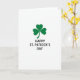 This greeting card features a single emerald green shamrock centered on a wide white background, with three heart-shaped leaves that feel like a quiet nod to friendship and a little romance 💚. The leaves angle upward from a slim stem, giving the simple symbol a gentle, affectionate lift. The open white space around it keeps the focus on the shamrock, like it’s been placed there just for someone special. Beneath the shamrock, the message “HAPPY ST. PATRICK’S DAY” sits in black sans-serif letters that are easy to read at a glance. The text is aligned under the stem and feels steady and direct, like a straightforward note you’d send to someone you care about ☘️. The strong contrast between the green icon, black lettering, and white background keeps everything uncluttered and modern. The shamrock’s green is rich and saturated, standing out sharply against the bright white field. The three heart-shaped leaves are evenly spaced, with smooth edges and a centered position above the line of black text.