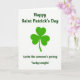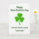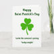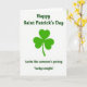 This greeting card features a white background with a three-leaf shamrock placed right in the vertical center, colored a rich emerald green that stands out sharply. Above the shamrock, the words “Happy Saint Patrick’s Day” sit near the top in matching green, using a soft, rounded font that feels friendly and easy to read 💚. Below the shamrock, a cheeky line reads, “Looks like someone’s getting ‘lucky tonight.’” in the same green, with quotation marks that add a flirty little wink without needing any extra decoration ☘️. The simple layout keeps all attention on the shamrock and the teasing message, like two people trading a knowing glance across a room. The flat shapes and crisp edges give it a modern, digital look, with no shading or extra textures competing for attention. The green is balanced—neither too dark nor too light—so it feels fresh against the white space. The top greeting, centered above, and the lower line, centered below, frame the shamrock like a neat stack of green text on a bright white field.