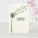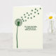 Designed with a simple two-tone look, this St. Patrick’s Day card features a stylized dandelion in deep green set in the lower-left corner against a creamy, parchment-like background. The round puffball sends tiny seeds drifting up and to the right, and as they float they shift into small shamrocks, like lucky little notes carried on a soft breeze ☘️. The open space around the stem makes the scene feel quiet and intimate, as if the dandelion is releasing a private wish meant for someone special 💚. To the right of the illustration, the message “If I had one wish, it would be to meet you sooner.” sits centered in the blank area, giving the words room to linger. The text is printed in the same rich green as the dandelion and clovers, tying the lettering to the artwork. The overall layout guides your eye from the anchored bloom in the corner to the rising trail of clover-shaped seeds, suggesting a gentle pull between two people. The last few shamrocks thin out near the upper-right, fading into the light background as they drift diagonally upward.
