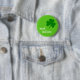 This button is perfect as an accessory for St. Patrick's day parties and activities! This white button features a dark green shamrock in the upper right corner of the button with a lighter green background. The bottom left of the button features your custom text in a cute flirty white cursive handwritten font.