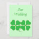 Plain white envelopes are included with paper invitations and will come to fit the invitation size you select. If you don’t need the envelopes, you may choose to not receive them by selecting the dropdown below "Envelopes" and choosing "None." If you’d like to have a design on your envelopes, you can browse all of these available envelopes to find the design that complements your Green Shamrocks With With Gold Dots Wedding Invite.