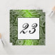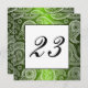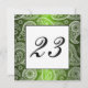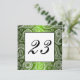 Deep, shimmering green satin print is overlaid in an elegant white lace paisley pattern for a wedding reception or party table number card that is elegant and unique.