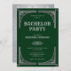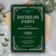 Invite your guests with this vintage Great Gatsby theme bachelor party invitation featuring silver decorative border with elegant typography against a green background. Simply add your event details on this easy-to-use template to make it a one-of-a-kind invitation. Flip the card over to reveal a beautiful silver stars pattern on the back of the card.
