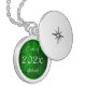 This unique personalized graduate necklace features silver year text with your customized text above and below it. The text is placed on a bright green abstract background. Elegant, easy to customize with your graduation year and name, and makes a nice keepsake gift for the high school or college graduate.