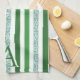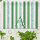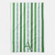 Green Silver Glitter Striped Initial Modern Trendy Kitchen Towel