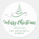 Green Silver Ribbon Tree Merry Christmas Script Classic Round Sticker
