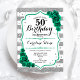 Green Silver White Stripes Floral 50th Birthday Invitation