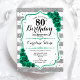 Green Silver White Stripes Roses 80th Birthday Invitation