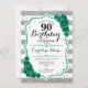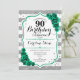 Green Silver White Stripes Roses 90th Birthday Invitation