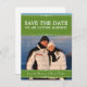 Modern and elegant Simple Chic Photo Save the Date Postcard featuring sleek borders in olive green and deco style embellishments in white. This stylish save the date postcard is easy to customize with a photo of the happy couple and wedding details. Click "Customize It" to find more personalization options.