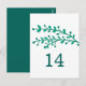 Sweet yet elegant Simple Foliage Wedding Table Number Postcard with a painted cascade of vibrant green leaves and vines. This modern and stylish table card is easy to customize with your wedding details. Find more personalization options by clicking Customize.