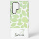 The design features a green skeleton leaf pattern background over a white background with the custom name and initial letter monogram at the bottom. Personalize the text, remove one or all the text or edit using the design tool to select a font style, size, and color you prefer. You can also transfer this design where it fits appropriately to another phone case brand or other product in the scroll bar.