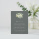 A dark gray green flat wedding reception enclosure card featuring an elegant bouquet/posy of hand painted snowberries and eucalyptus on the front and a wreath on the back of the card. All text is fully editable and the scattered dots on the front and back can be deleted before ordering if you would prefer. This card is available with alternative botanical designs, in a landscape format, and in different colors. Please view the Collection in my store to see all options and coordinating items.