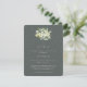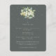 An elegant dark gray green flat wedding enclosure card featuring a bouquet/posy of hand painted snowberries and eucalyptus on the front and a wreath on the back of the card. All text is fully editable and the scattered dots on the front and back can be deleted before ordering if you would prefer. This card is available with alternative botanical designs, in a landscape format, and in different colors. Please view the Collection in my store to see all options and coordinating items.