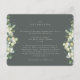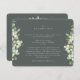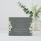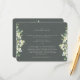 A dark gray green flat wedding reception enclosure card for wedding receptions that are held at a different venue than the wedding ceremony. The card features an edging of hand painted snowberries and eucalyptus on the front and a wreath on the back of the card. All text is fully editable and the scattered dots on the front and back can be deleted before ordering if you would prefer. This card is available with alternative botanical designs, in a portrait format, and in different colors. Please view the Collection in my store to see all options and coordinating items.